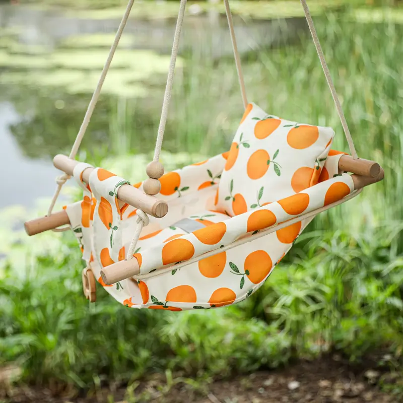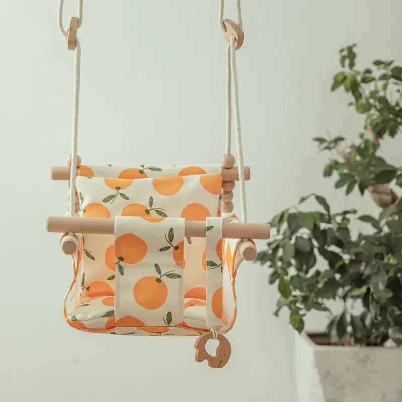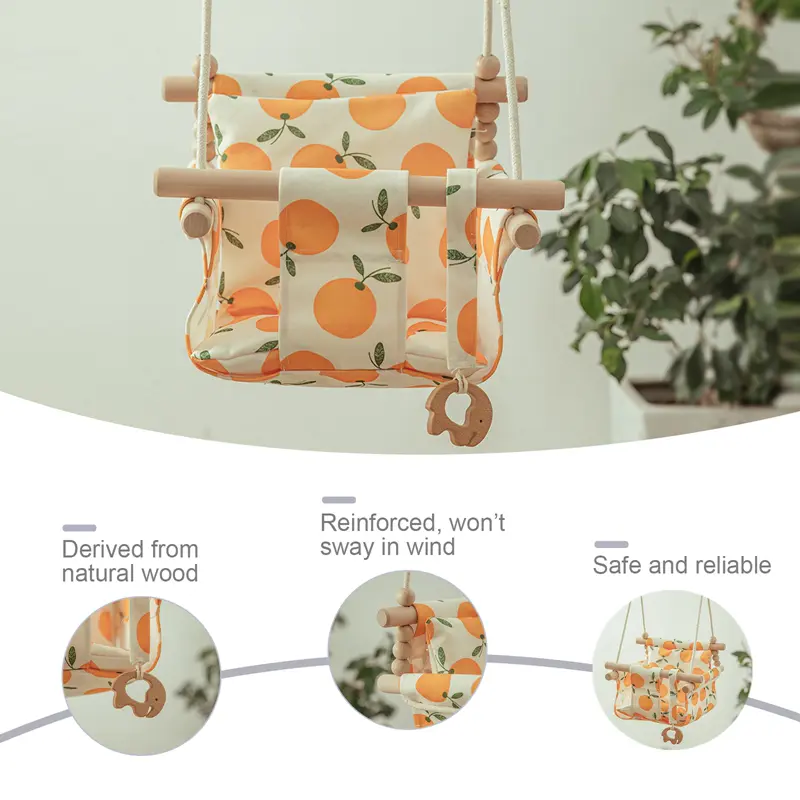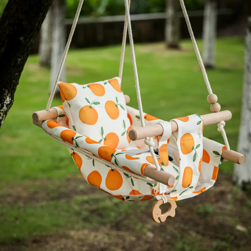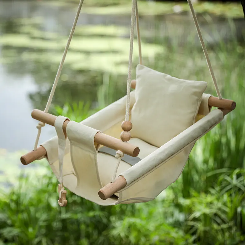 INS Portable Baby Wooden Hanging Swing Seat Adjustable Safety Canvas Cushion Hammock 0-12 Months Toddler Outside Swing Chair