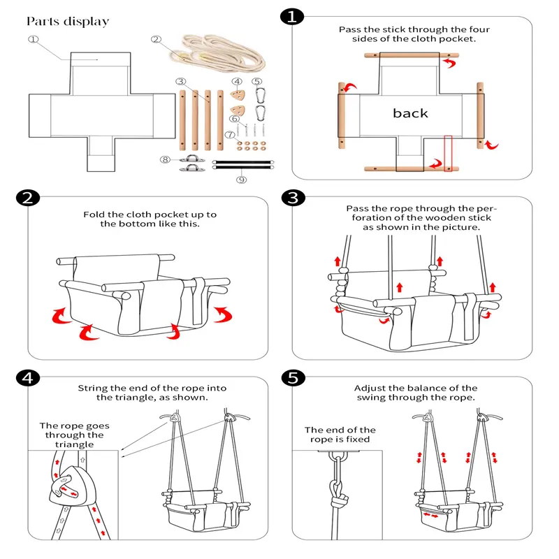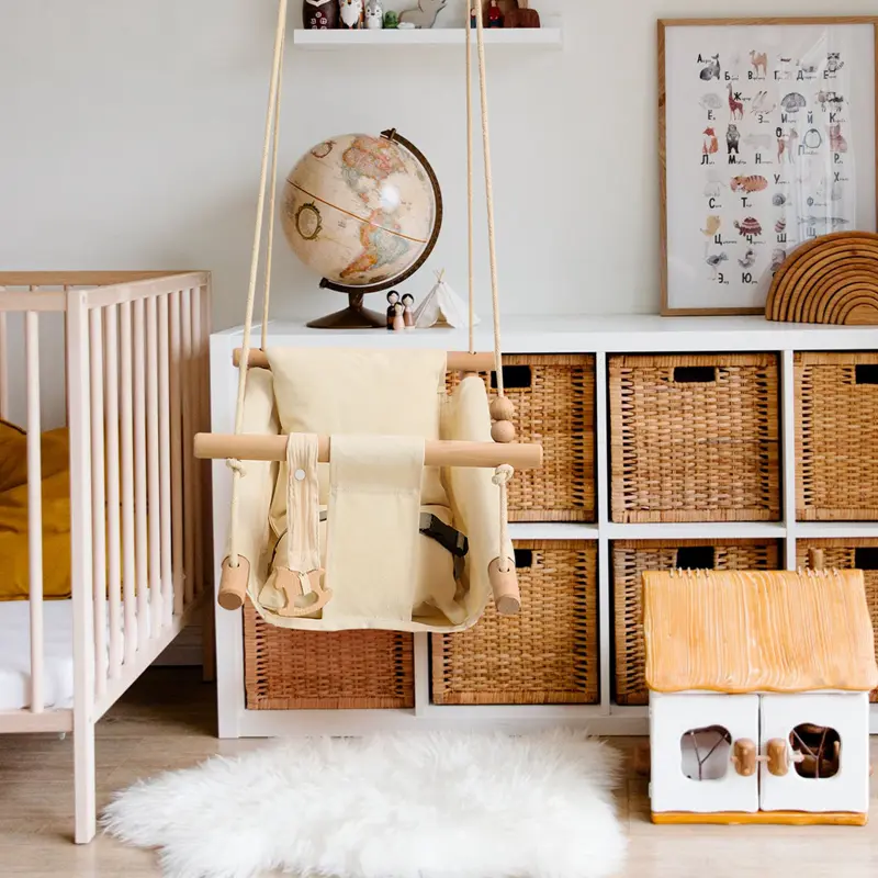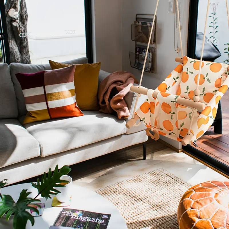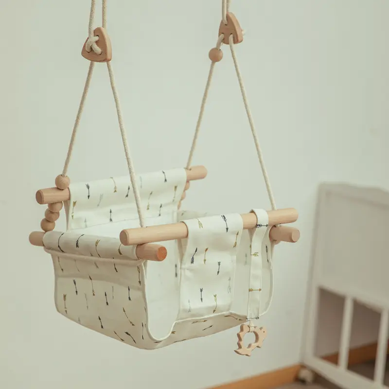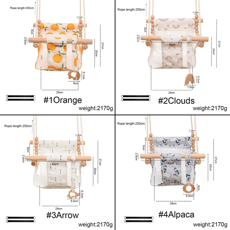 INS Portable Baby Wooden Hanging Swing Seat Adjustable Safety Canvas Cushion Hammock 0-12 Months Toddler Outside Swing Chair